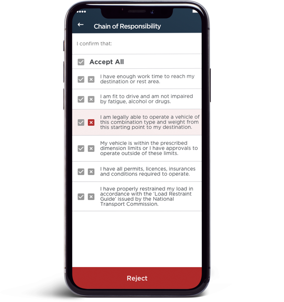 For the latter, an example would be the AgriChain System’s mobile app for logistic movements. In the CoR section of this app, prior to the completion of an inload/outload, both the grower and the truck driver are required to legally declare, confirm, and sign off that they have complied with mass limits, load restraints and dimensions, and are fit to drive.